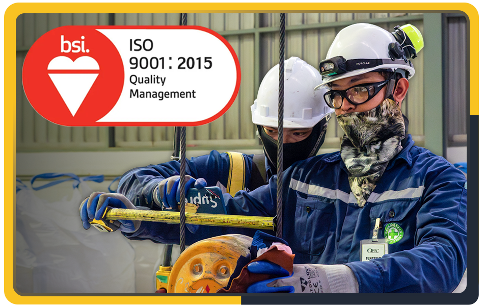 เราได้รับมาตรฐานการบริการด้านคุณภาพ ISO 9001 มั่นใจว่าทีมงานของเราและอุปกรณ์การทำงานนั้นมีมาตรฐานตลอดการบริการตรวจเครน